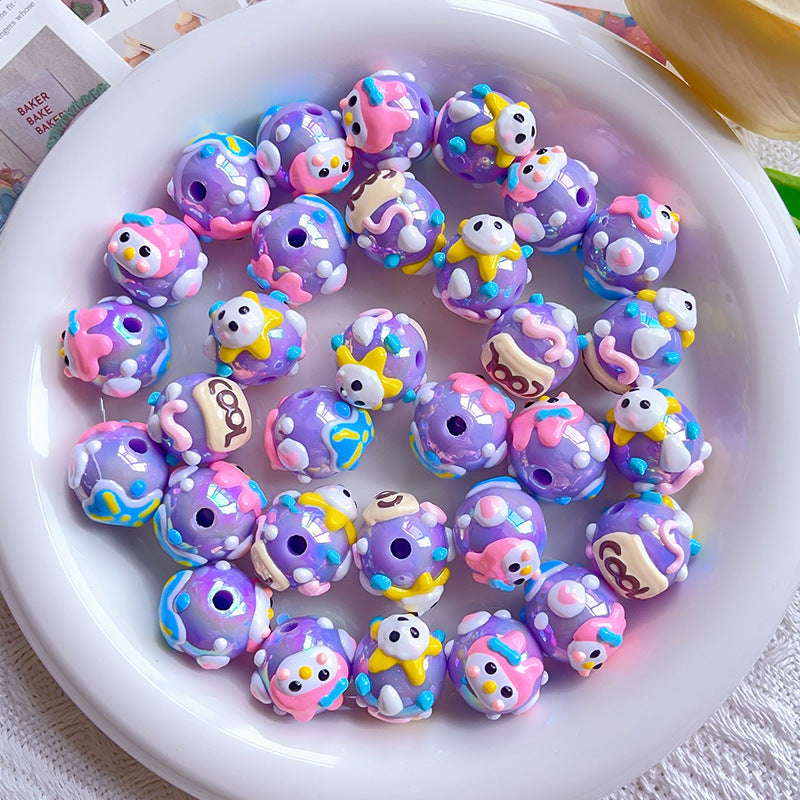 50pcs-Acrylic Heavy Hand Painted Cartoon Pig Cute Beads Car Hanger Mobile Chain DIY Accessory