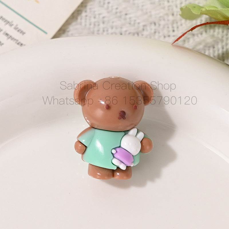 New Cartoon Soft Rubber 3D Bear Through-Hole Beads for DIY Phone Chain Keychain Bag Pendant Materials