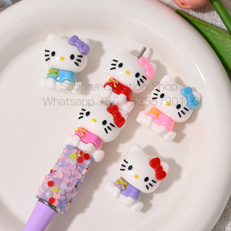 Sitting Posture Internet Celebrity Hello Kitty Cartoon Rubber Beads KT Cat Bowknot Hole Loose Beads DIY Phone Chain Accessories Wholesale